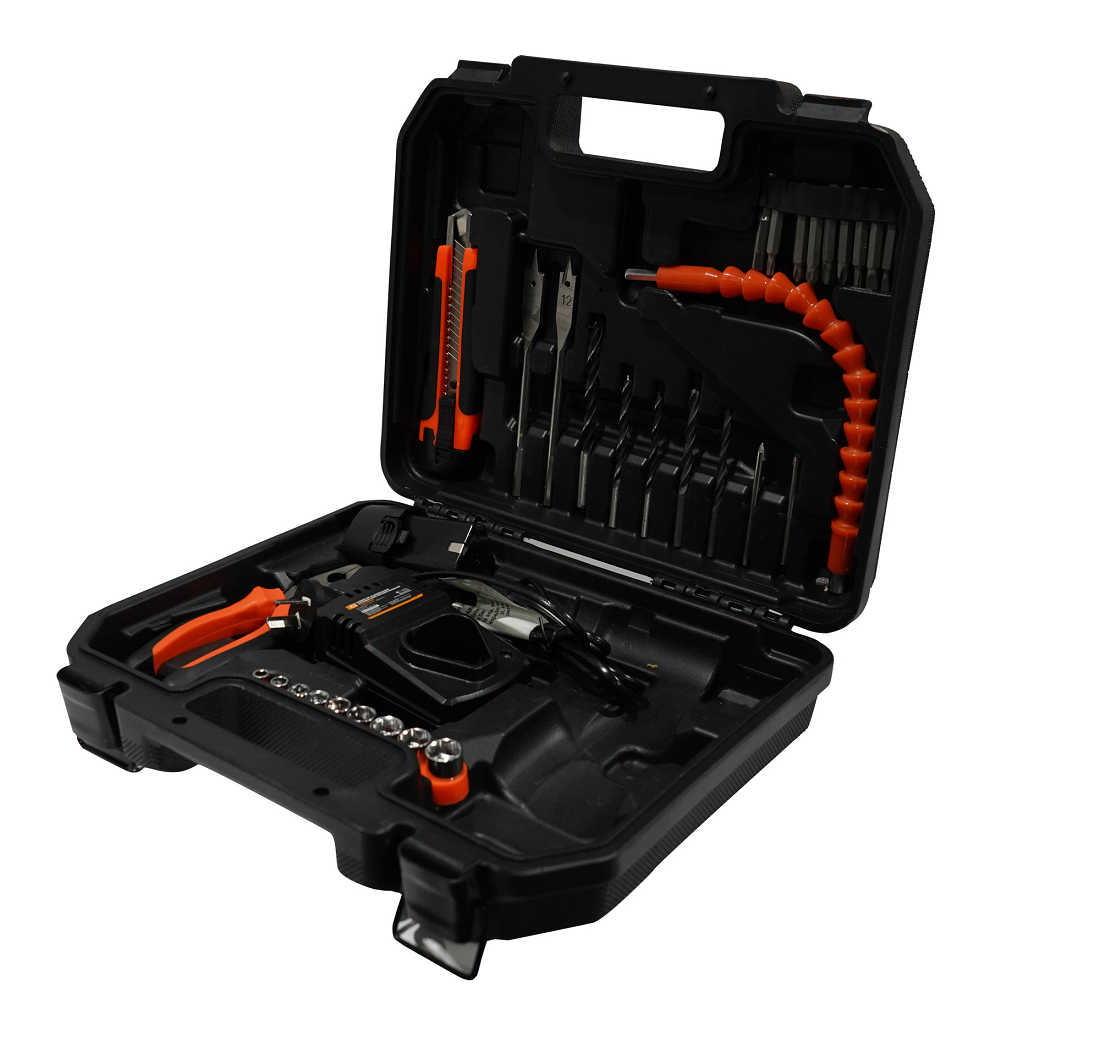 Ideal para el hogar, este taladro inalámbrico te permite perforar y atornillar con total comodidad. Incluye múltiples accesorios para que tengas todo lo necesario en un solo maletín 🧰✨